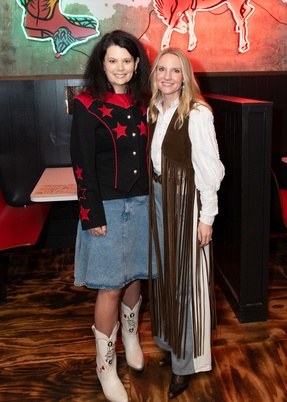 As guests stepped in wearing their best cowboy boots and fringe, they were greeted by vibrant neon lights and the thrilling announcement of the logo and theme, “All Cylinders”, which was displayed on TVs throughout the restaurant as well as set upon a backdrop with a larger than life guitar. The 2025 logo has motifs of bandanas and guitars, with a color palette of Rock n’ Roll Black, Burgundy Saloon, Canyon Clay, Antique Brass, Deep Burgundy, and Pure White.