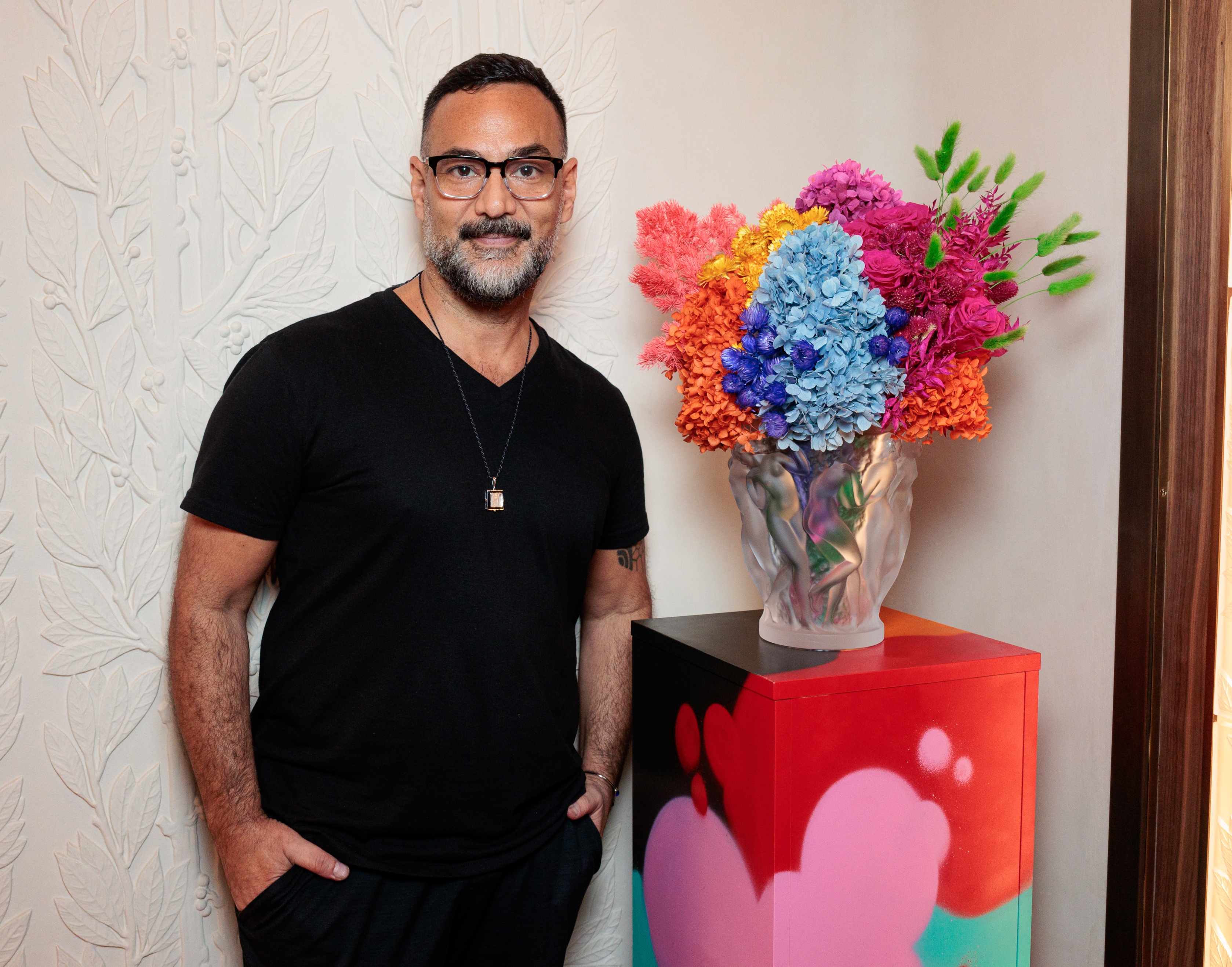The evening featured a culinary experience curated by longtime partner and collector Chef Daniel Boulud, with libations including an assortment of Vignobles Silvio Denz wines, The Glenturret spirits and bubbles from Deutz. Oscar Mora worked alongside Daze to create stunning floral arrangements that evoked the aesthetic of the artist's iconic graffiti work, as well as stunning takeaway arrangements with spray paint splatters.