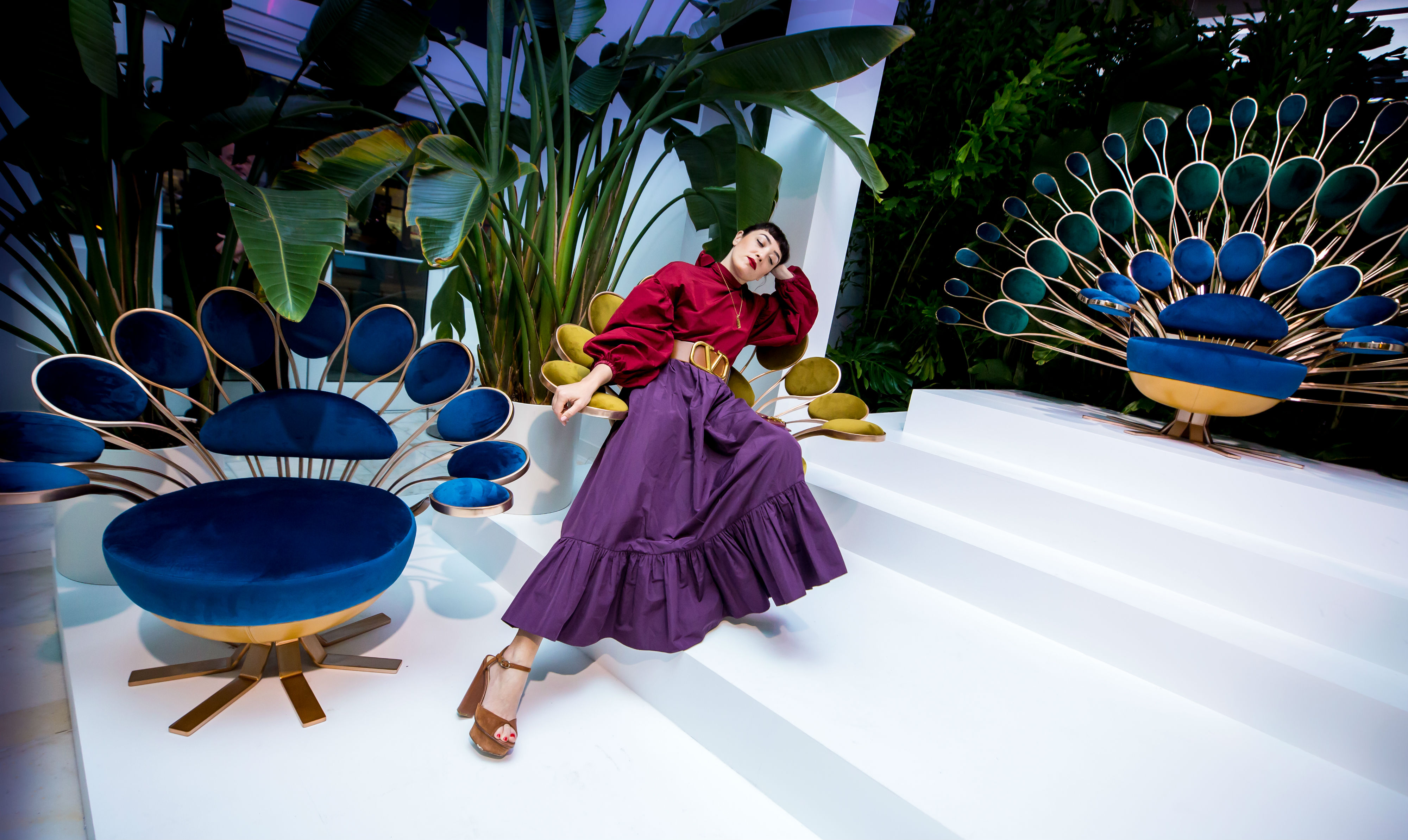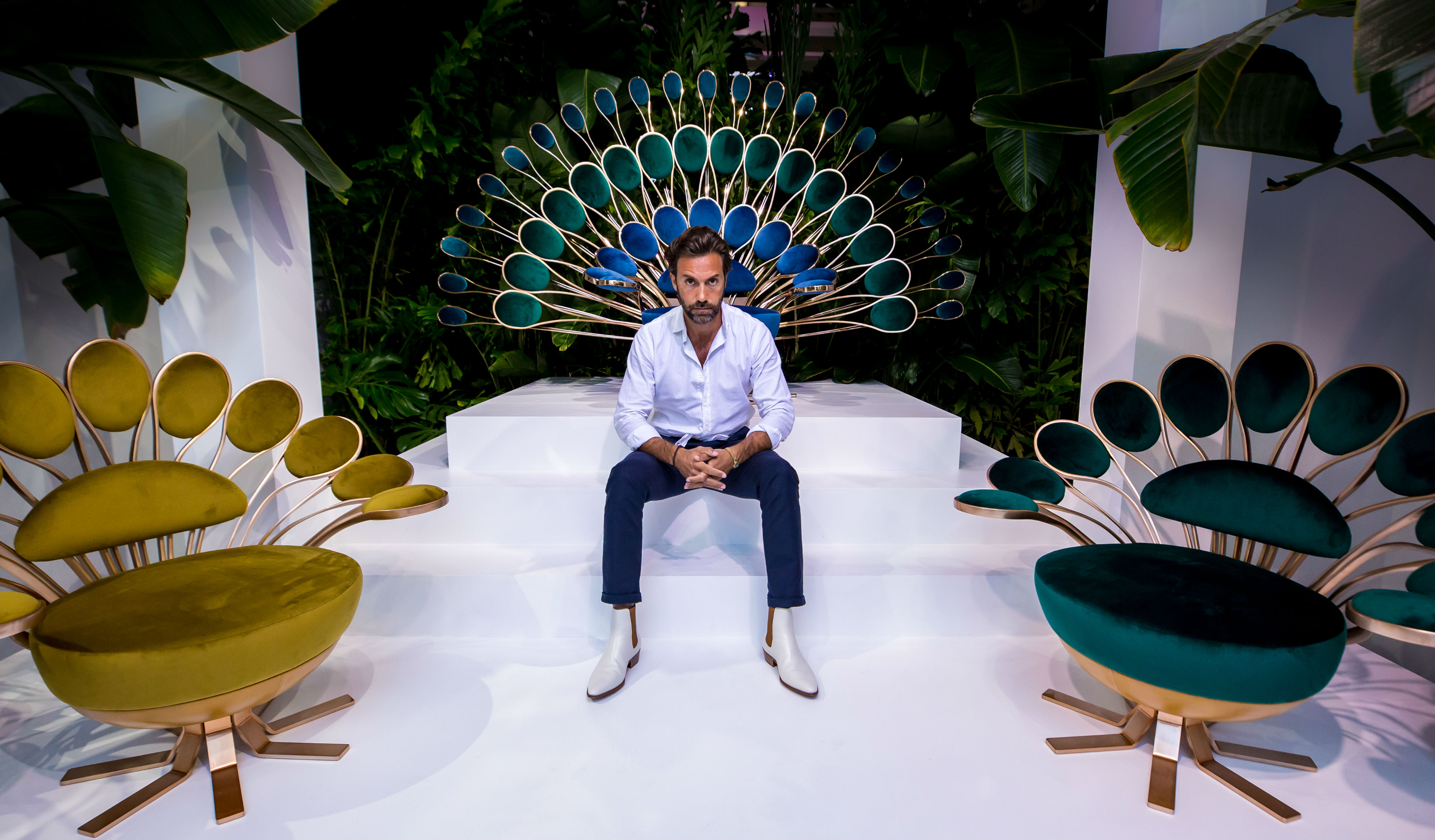 Celebrating the symbiosis between Art and Design, Italian meta-luxury lifestyle power-player, Visionnaire, hosted an intimate cocktail to celebrate the official unveiling of The Garden of Beauty exhibit and Il Pavone capsule collection designed by award winning Designer Marc Ange during Art Basel and Design Miami. Il Pavone Throne and Il Pavone Armchair, Marc Ange’s six creations for the brand, serve as an ode to the romantic and seductive beauty of the peacock. The new capsule collection was presented for the first time at the Visionnaire flagship in Miami, within The Garden of Beauty, which celebrates the beauty of the natural world with a lush garden, to envelop the pieces.
