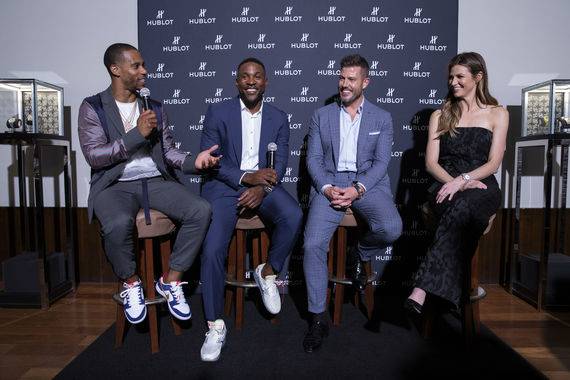 During dinner at The Setai Miami Beach, Erin Andrews and Jesse Palmer hosted a panel during which Arizona Cardinals cornerback Patrick Peterson and former New York Giants wide receiver Victor Cruz discussed their careers and relationships with Hublot.