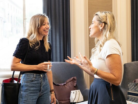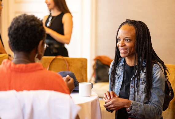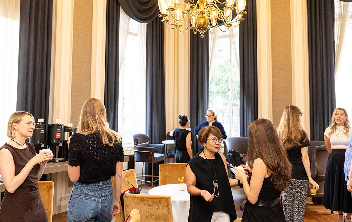 Guests gathered in Beacon West, a private room off the lounge on the mezzanine level, for a morning of connecting over coffee, tea, and breakfast bites.