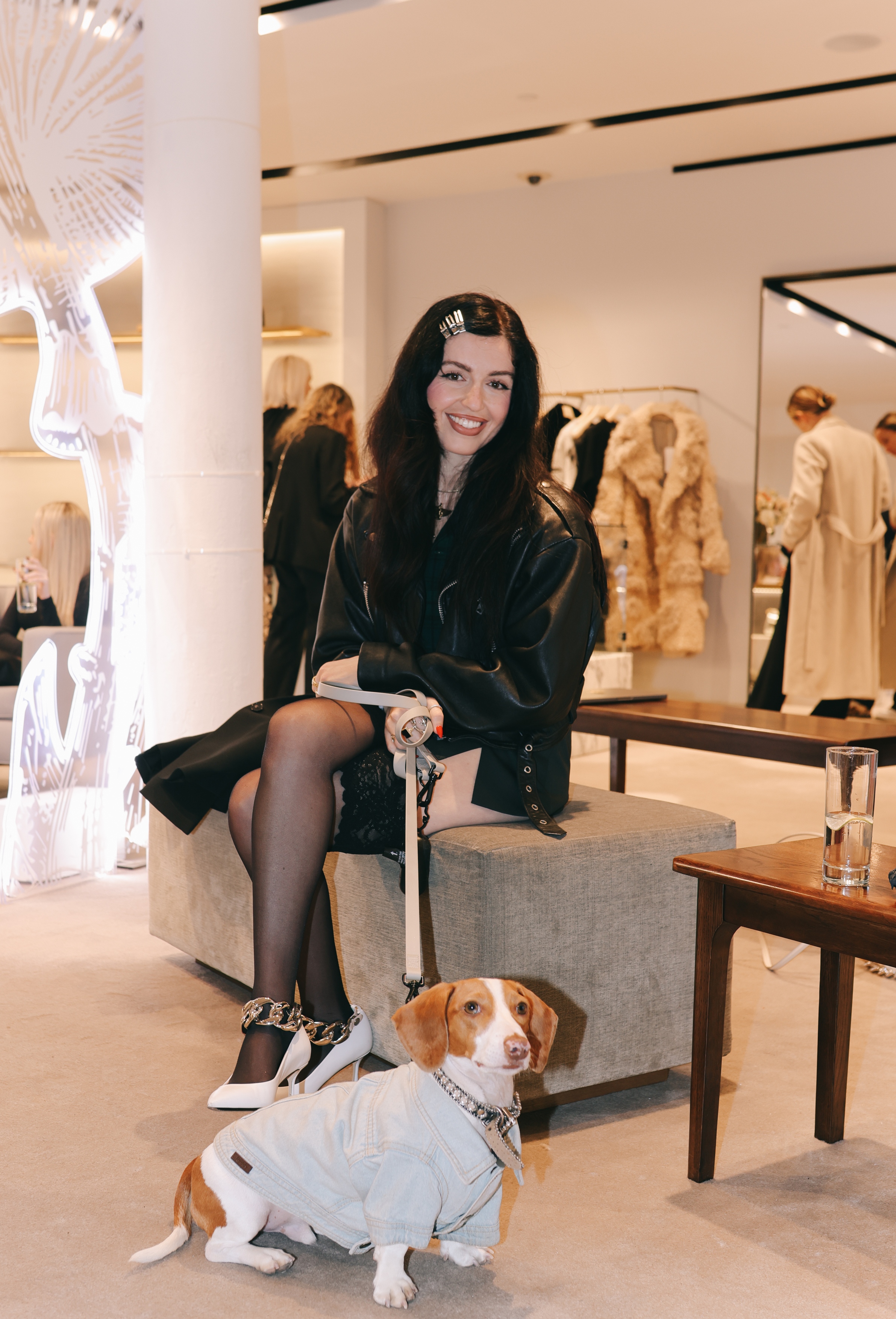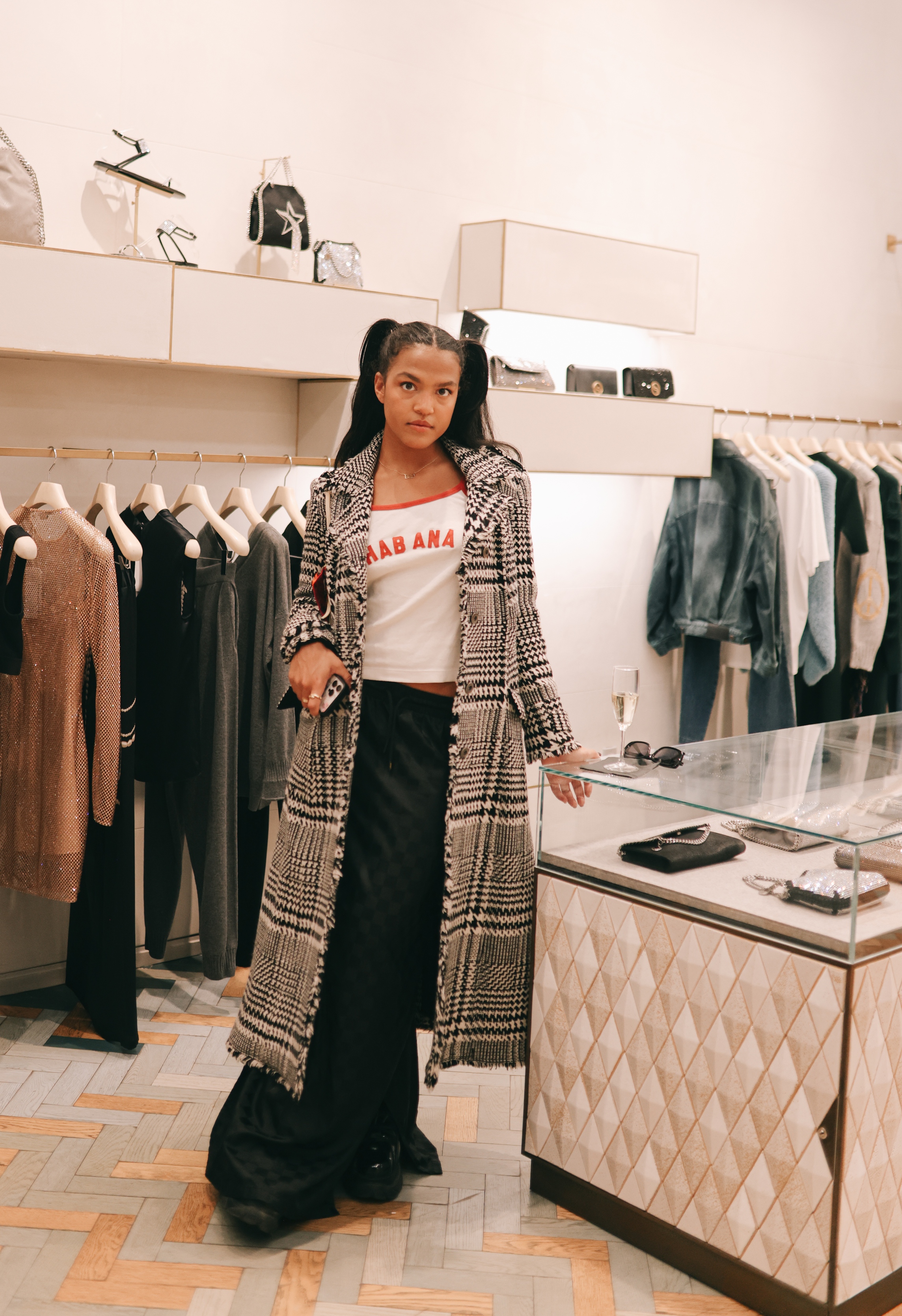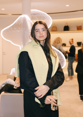 In attendance were media representatives, fashion enthusiasts, and a community of environmentalists who gathered to hear from Manda Kalimian, the founder of Rewilding America Now. Manda, styled by the Stella McCartney team, wore the Prince of Wales Check Oversized Blazer over the Horse Crystal Embroidery Shirt, styled with a Frayme Bucket Bag and stiletto boots. The evening commenced with a warm welcome, offering guests refreshments and champagne, setting the stage for an enlightening discussion on the critical importance of rewilding initiatives and the preservation of North America's wild horses and lands.