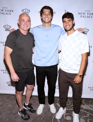 Notable attendees included Carlos Alcaraz, Taylor Fritz, Caroline Wozniacki, Andre Agassi, Elena Rybakina, Craig Melvin, and Sheinelle Jones.