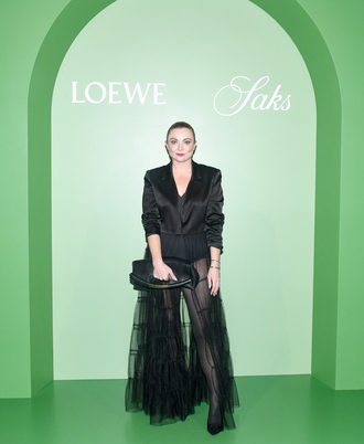 LOEWE Creative Director Jonathan Anderson and Saks Chief Merchandising Officer Tracy Margolies hosted an intimate dinner on the rooftop terrace at Pace Gallery in New York City to celebrate the launch of an exclusive edit of LOEWE’s highly anticipated Fall/Winter 2024 collection, available now on Saks.com and at select Saks Fifth Avenue stores. A sunset cocktail hour kicked off the evening with breathtaking views of the city complemented by specialty cocktails and passed canapés, such as striped bass crudo and summer tartlets. A three-course meal by renowned chef August Johnson of One White Street was served on stunning tablescapes adorned with LOEWE candles and whimsical floral and vegetable centerpiece arrangements, as a nod to the distinctive floral and vegetable motifs featured throughout the LOEWE Fall/Winter 2024 collection.
