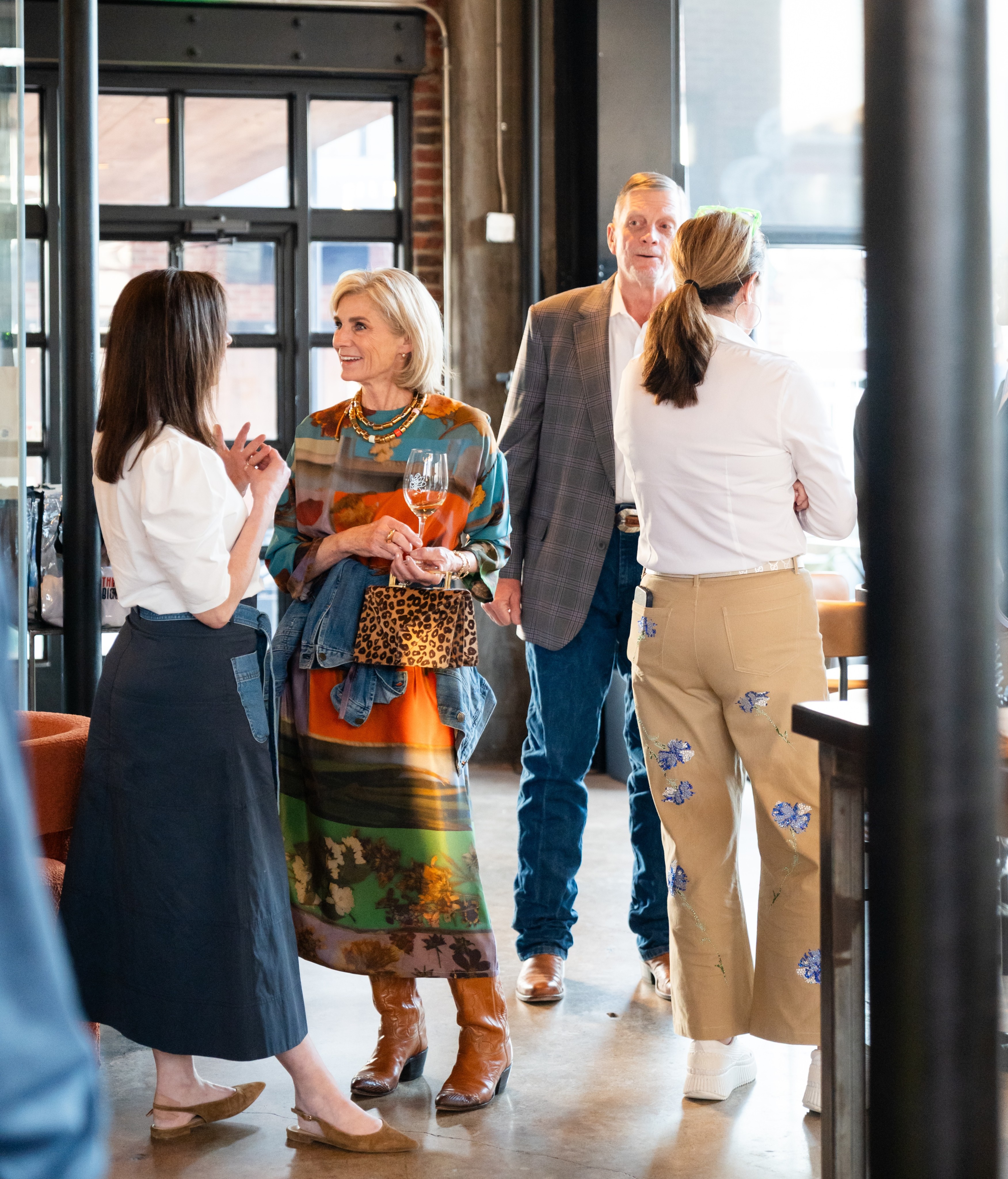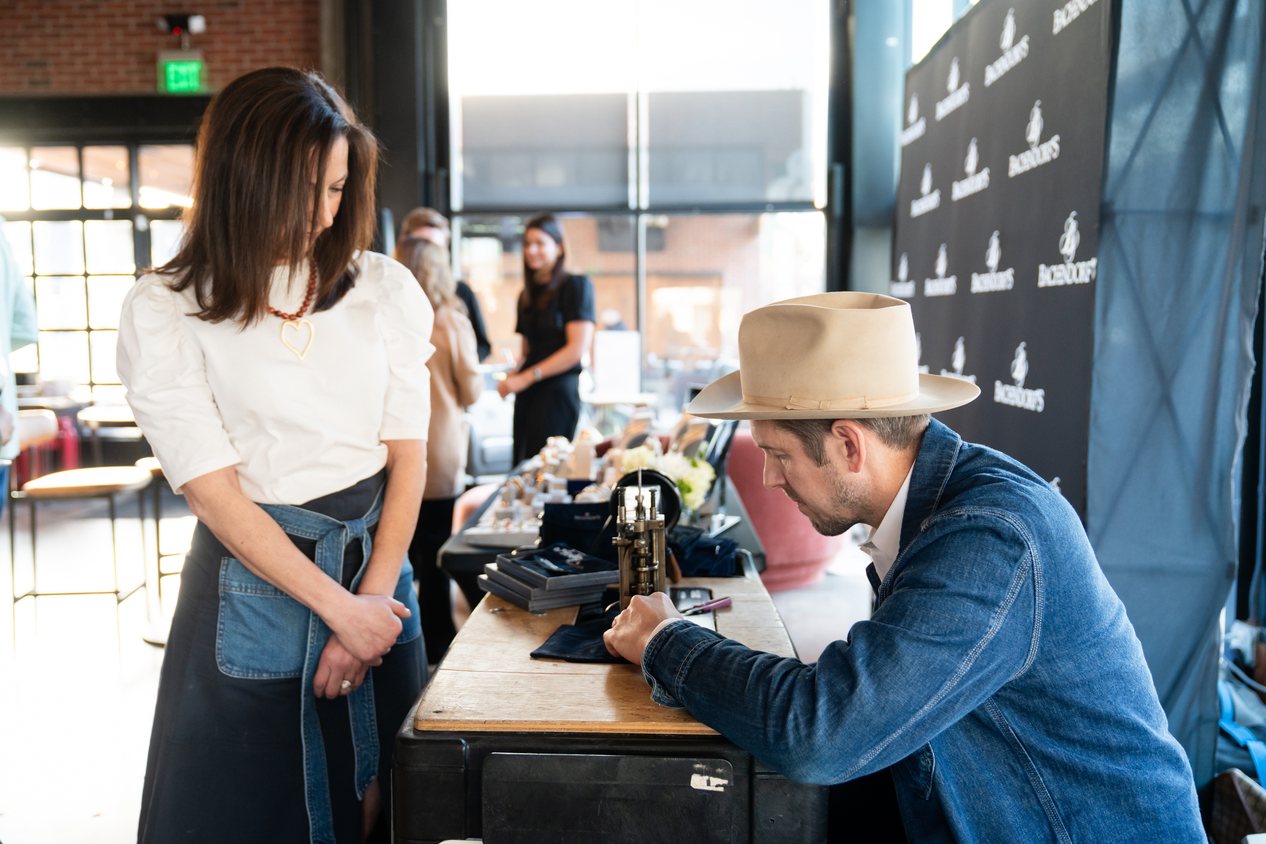 The atmosphere was electric as Bachendorf’s welcomed friends and supporters, including non-profit co-founder Kelsey Patterson. To commemorate the night, guests received custom travel jewelry pouches, made even more special with live, on-site chain stitching by artist Daniel Wright.