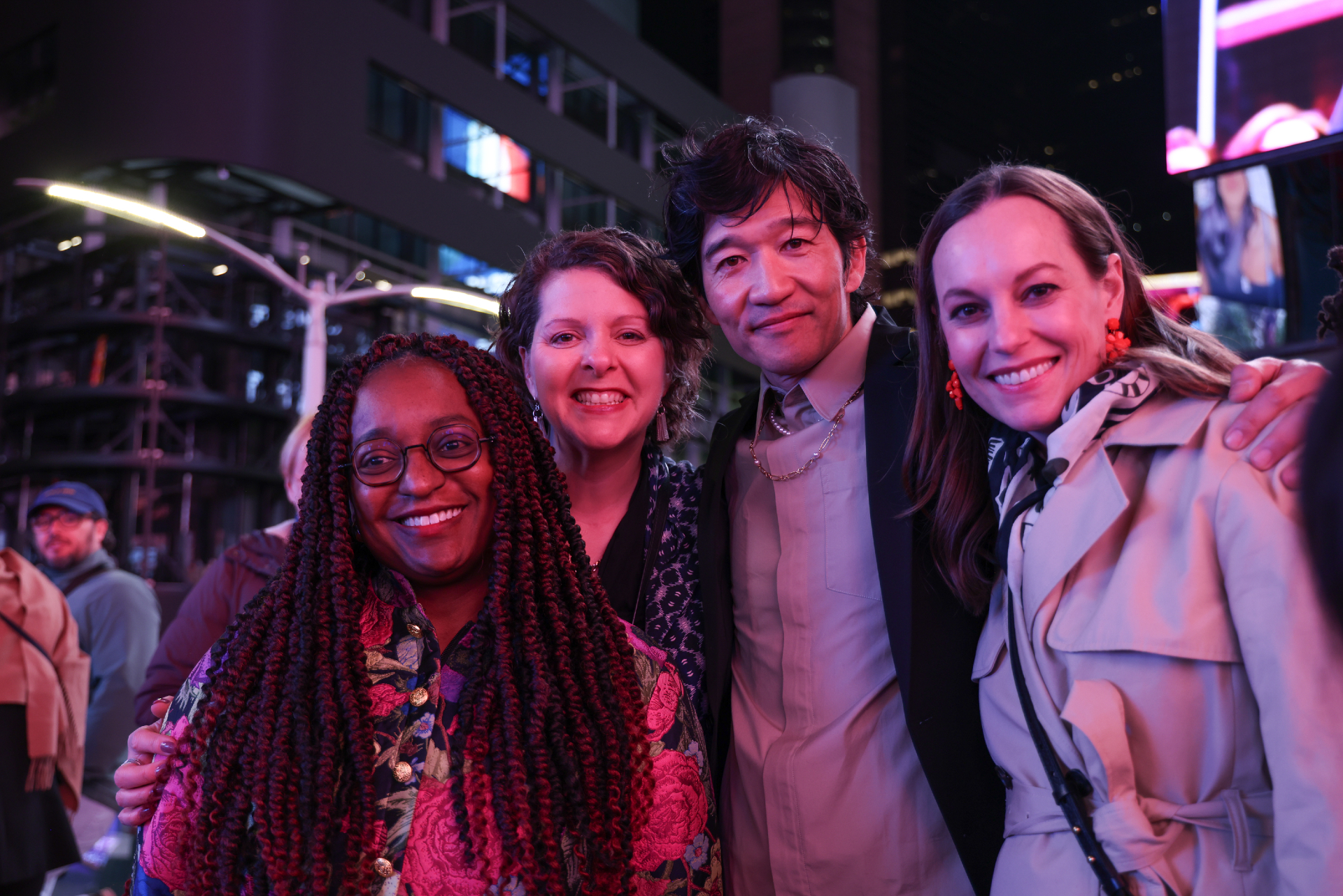 Internationally acclaimed artist Tomokazu Matsuyama unveiled his latest work, Morning Again, as part of the Times Square Arts Midnight Moment program, marking an electrifying milestone in his evolving practice. Matsuyama honored the occasion with a celebratory evening, gathering his closest muses, friends, and supporters at the Times Square EDITION before heading to the Red Steps to watch the project illuminate Times Square.
