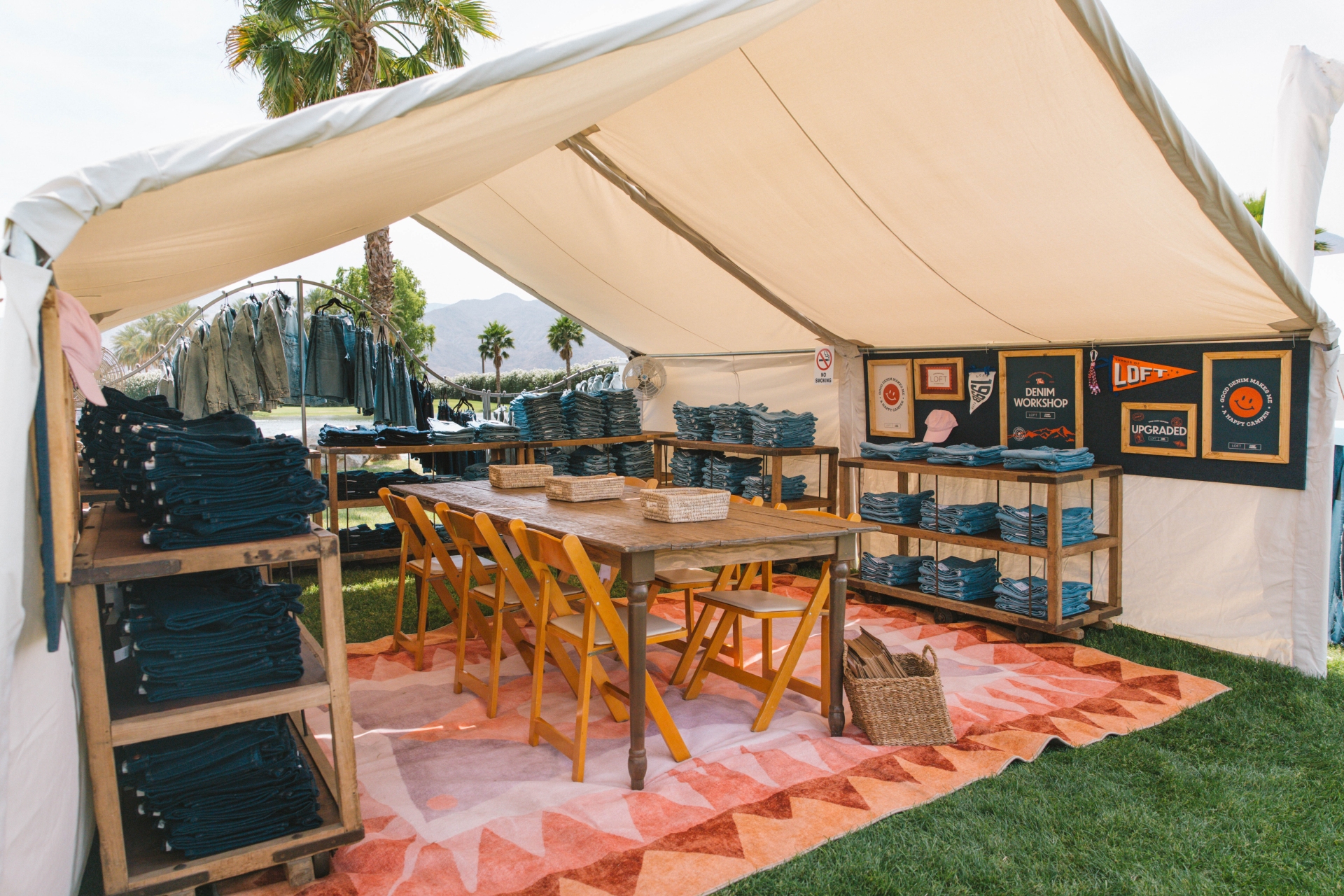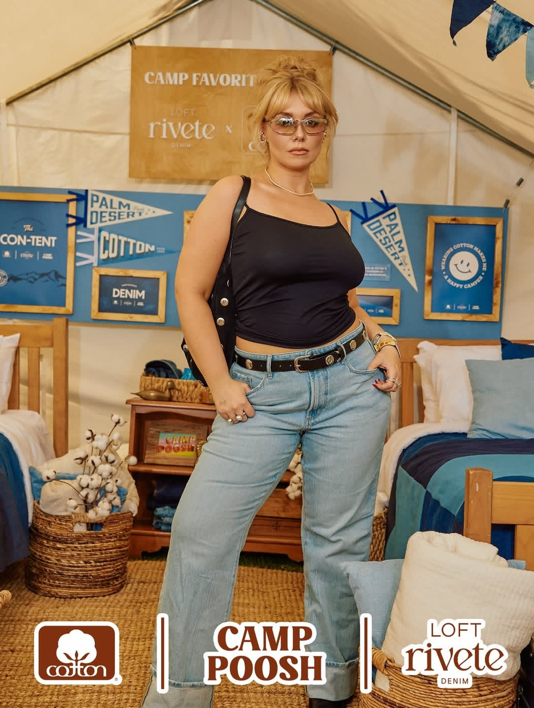 In addition to being the event's most sought-after customization tent as the event's exclusive denim sponsor, LOFT teamed up with Cotton, Inc. to co-host the event’s Con-Tent, featuring the brand’s new cotton-rich line, Rivete Denim. The live photobooth was the first stop for all Campers entering the event and a must-have souvenir photo to commemorate their time at Camp Poosh.